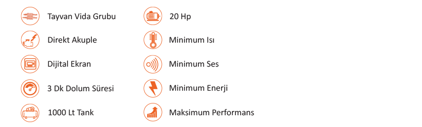 20 Hp 1000 Lt Vidalı Hava Kompresörü Özellikleri